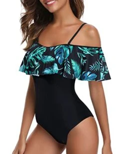 Long Torso Printed One Piece Swimsuit For Women Ruffled Flounce Bathing Suit-Black White Dot