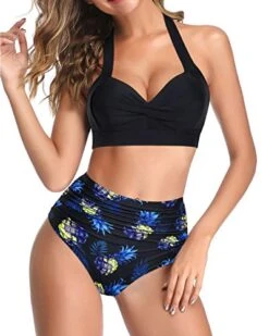 Ruffled Retro Bathing Suit Flounce Printed Swimwear Off Shoulder One Piece Swimsuit-Black Pineapple