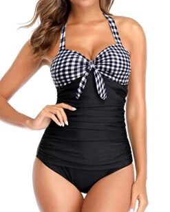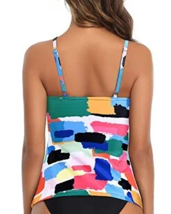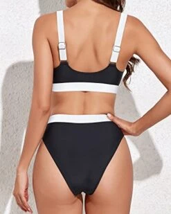 Women Adjustable Shoulder Strap Swimsuits Sporty Scoop Neck Bikini-Light Blue And Light Green