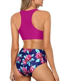 High Waisted Twist Front Push Up Bikini Set Criss Cross Push Up Bikini-Green Tropical Floral