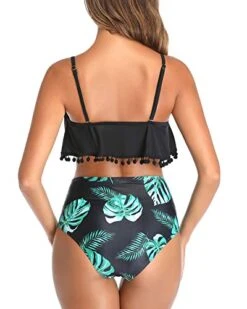 Sexy Off-Shoulder One Piece Lace Up Ruffled Bathing Suit-Black And White Snake Print