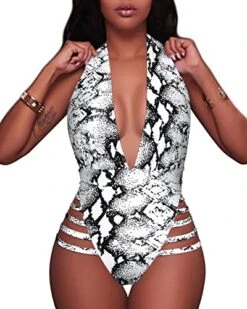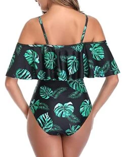 Tropical Long Torso One Piece Swimsuit For Women-Black And Leopard