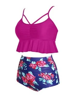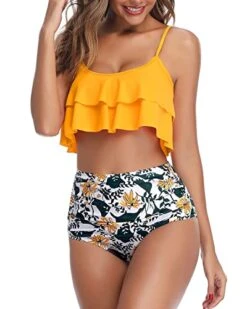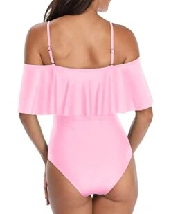 Women’s Off Shoulder Ruffled Flounce One Piece Swimsuit-Black