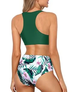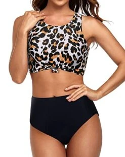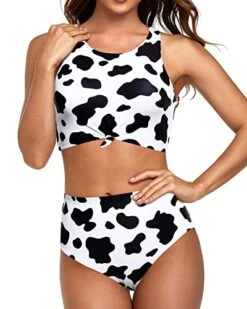 Full Coverage High Waist Bikini Sporty Two Piece Swimsuits-Black And White Cow Pattern1