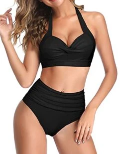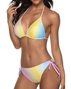Two Piece Halter Padded Top Tie Side Bottom Bikini Bathing Suit 2 Piece Bikini Sets-Color Stripes
