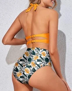 Tummy Control Tie Side Wrap Slimming Ruffle V Neck One Piece Swimsuits-Black Pink Flowers