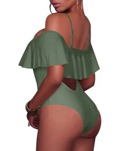 Ruffled Strapless One Piece Swimsuit For Women-Light Grey Blue