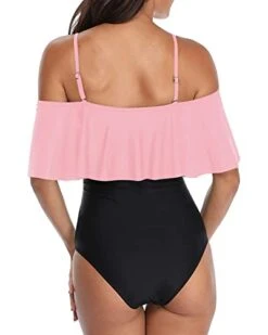 Women’s Slimming Off Shoulder One Piece Bathing Suits-Pink And Black