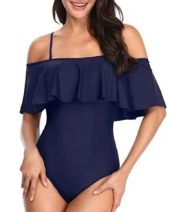 Women’s Off Shoulder Slimming One Piece Swimsuits-Color Tie Dye