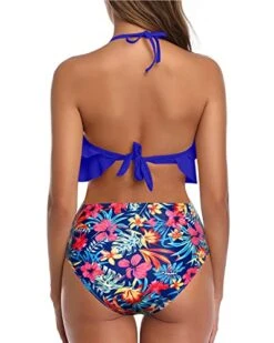 Vintage Off Shoulder Ruffled Bathing Suits Padded Bras-Neon Yellow