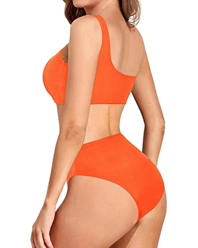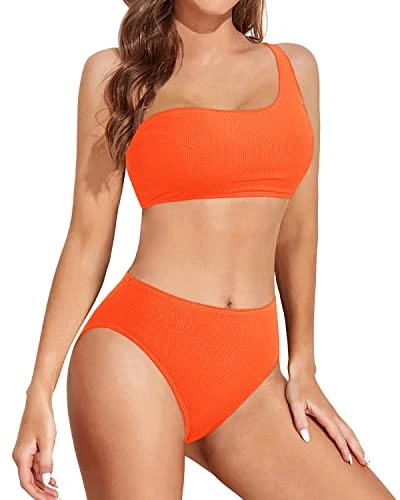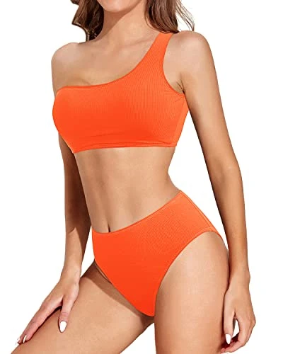 Get ready to turn heads with this trendy two piece swimsuit that includes a one shoulder high waisted bikini set with removable pads and flattering high-cut design.