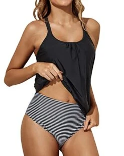 These blouson tankini swimsuits with shorts are perfect for covering your belly and adorning you with a cute vibe, while still providing tummy control and a flattering fit.