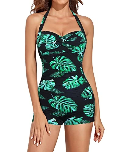 Look and feel your best at the pool or beach with this stunning boyleg retro halter one piece swimsuit, designed with adjustable halter neck, hard padded push-up bra, and ruched design for full coverage and slimming effect.