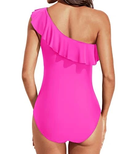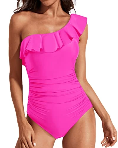 Stand out at the beach or pool with this Ruffle Swimwear, featuring an asymmetrical neckline with a playful ruffle, tummy control, and front ruched details for a flattering silhouette.