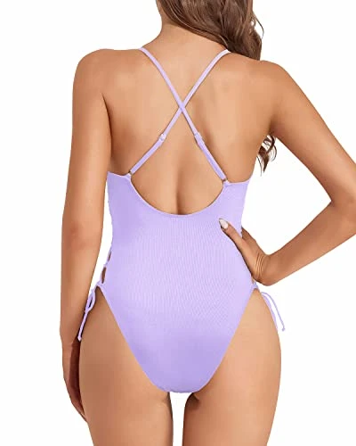 This high-waisted and slimming one-piece swimsuit features strappy criss-cross details and moderate coverage, making it a chic and stylish choice for beach vacations and pool parties.