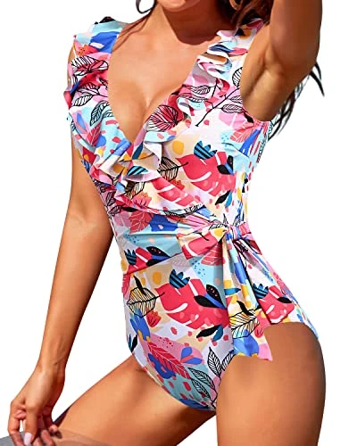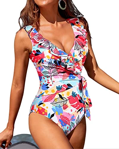 This padded push up bra ruffle one piece swimsuit with adjustable tie side wrap provides the perfect support and shape to make you feel sexy and confident.