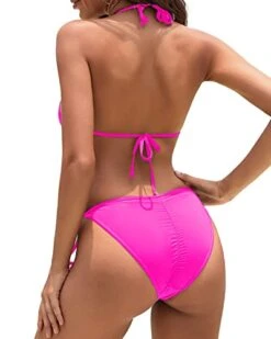 Elevate your swim game with this chic and sporty two piece bikini set for women, featuring a high waisted bottom with elastic band and a high neck top with adjustable cutout back and removable padded bra.