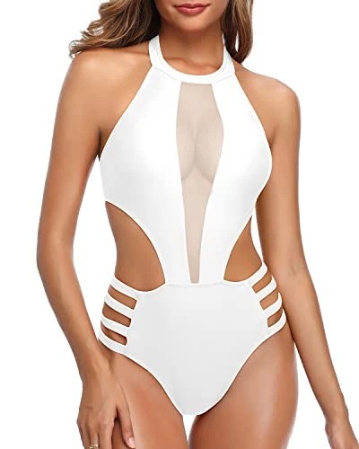 Turn heads in this stunning and glamorous high neck halter cutout monokini one piece mesh swimsuit, designed to make you feel like a true beach goddess.