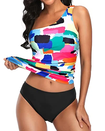 Stay comfortable and confident in our one shoulder tankini swimsuit, featuring a soft and stretchy material and removable padded bras for support.