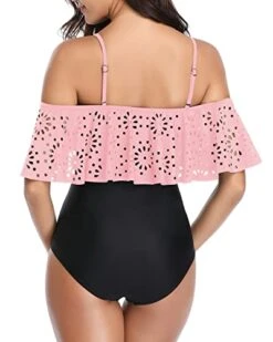 Vintage-style bikini set with flounce hemline and lace-up back, perfect for beach parties, honeymoon, or Hawaii vacation.