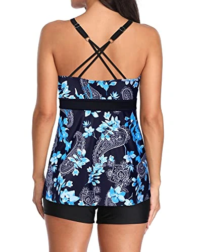 Look stylish and feel comfortable in these high-quality 2 piece tankini swimsuits for women, complete with a lightly flowy swim tank top and full coverage shorts.