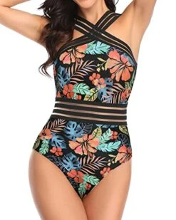 Make a splash at the beach or pool in this trendy and comfortable tankini swimsuit, featuring a high neck top and tummy control bottoms to accentuate your figure.