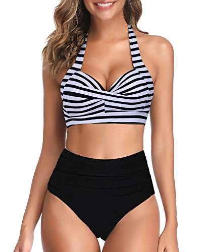Feel confident and stylish in the 2 Piece High Waist Bikini with High-Cut Legs, designed with a pleated front panel and comfortable stretchy material that accentuates your curves.