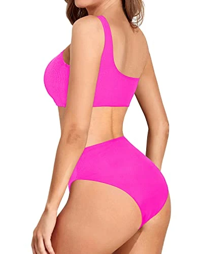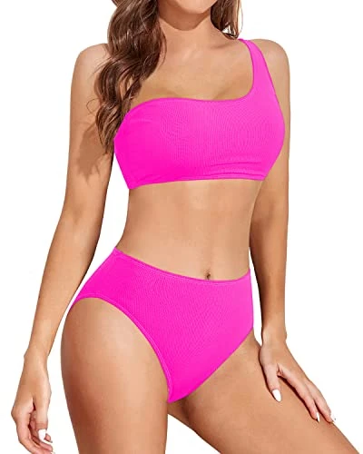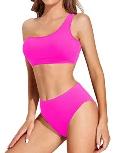 Look and feel confident on the beach with this one shoulder high waisted high cut bikini set that offers comfort, style and support in one perfect package.