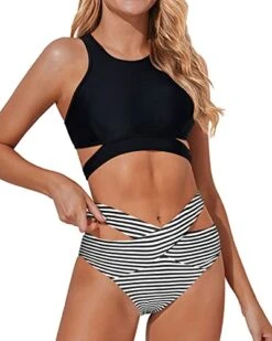 Look and feel your best in this sexy and comfortable high neck cutout bikini set, featuring a supportive push-up bra and an adjustable tie waist for a flattering fit.