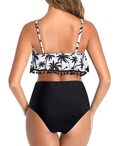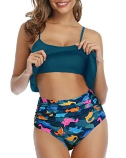 This two-piece swimsuit with high waisted bottoms and ruffle flounce top is made of high-quality fabric that’s stretchy, durable, and breathable, making it perfect for any water activity.