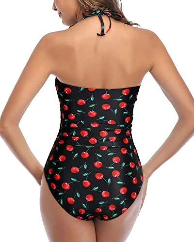 Get ready to feel amazing in this Cutout Tummy Control High Waisted Halter One Piece swimwear featuring a retro design with shirring on the side, tie-up closure, removable and adjustable halter straps, and a backless design, perfect for your beach vacation, pool swimming, Hawaii, or honeymoon.