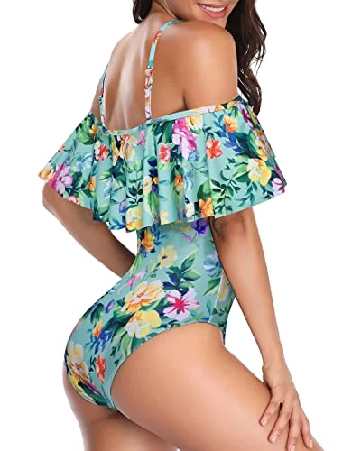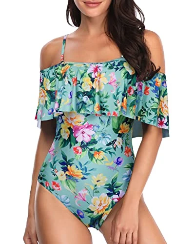 Elevate your swimwear game with this stunning off shoulder swimsuit featuring ruffle detailing, perfect for a beach holiday or honeymoon.