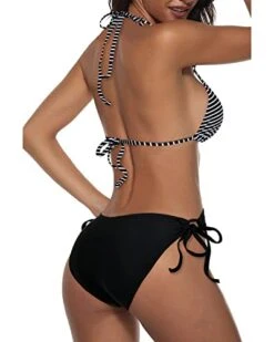 Make a statement in this beautiful two-piece bikini set with a sliding triangle top and tie-side bottom, designed to enhance your curves and provide a comfortable, breathable fit.