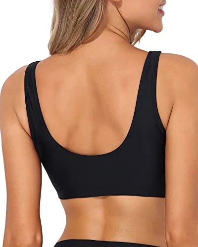 Look and feel your best at the beach or by the pool with this stylish scoop neck tank crop top that offers good support and beautiful shape thanks to its soft removable padded push-up bra.