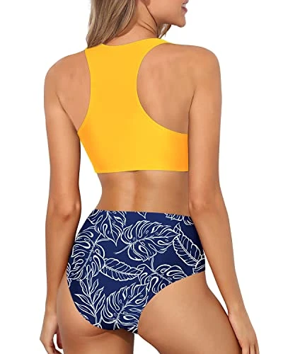 Feel confident and comfortable in this trendy and flattering high waisted sporty racerback bikini set, designed to cover imperfections and enhance your curves.