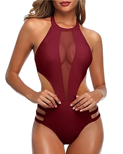 This versatile and flattering high neck halter cutout monokini one piece mesh swimsuit is the perfect choice for any beach or poolside occasion.