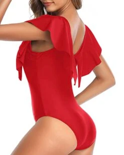 This versatile and stylish ruffle flounce sleeve v neck tummy control one piece swimsuit is the perfect choice for any summer adventure.