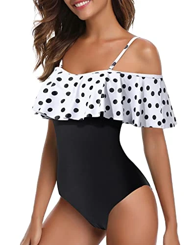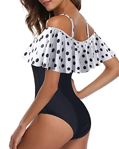 Get the perfect fit and look with this ruffle one-piece off-shoulder swimsuit, featuring removable shoulder straps, tummy control, and a charming flounce design that flatters your figure and enhances your curves, perfect for any beach or poolside activity.