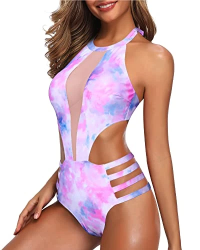 Feel confident and beautiful in this sexy and flattering high neck halter cutout monokini one piece mesh swimsuit, designed to showcase your unique sense of style.