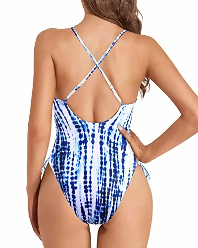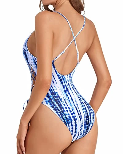 Look sexy and confident in this lace-up one-piece swimsuit, featuring a deep plunge V-neck, open back, and high-cut bottom that flatters your curves and shows off your beautiful legs.