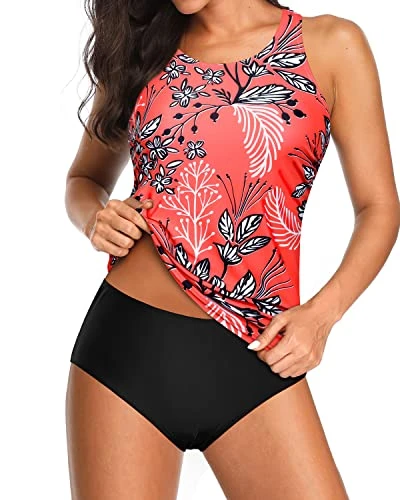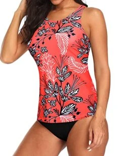 Show off your unique style and feel confident in this two piece tummy control high neck tankini swimsuit set, perfect for any water occasion.