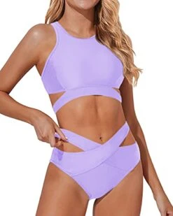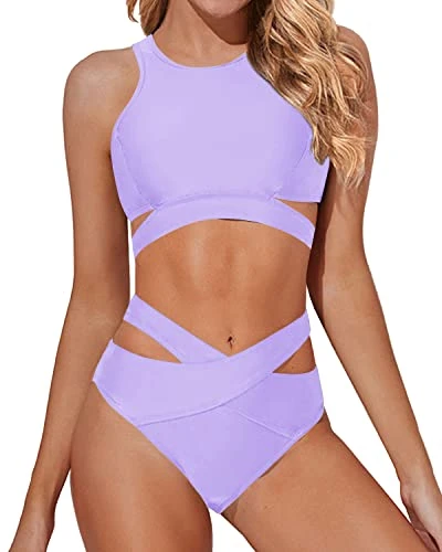 Make a statement at the pool or beach in this bold and beautiful high neck cutout criss cross bandage bikini set, featuring a supportive push-up bra and adjustable tie waist for a perfect fit.