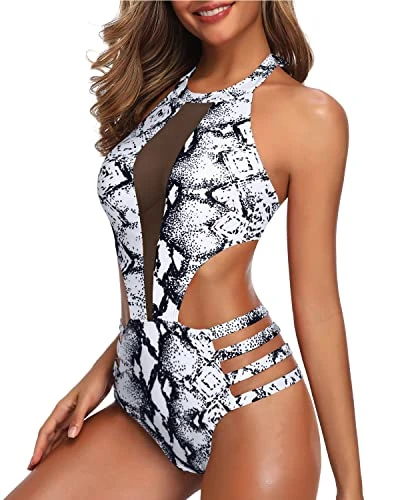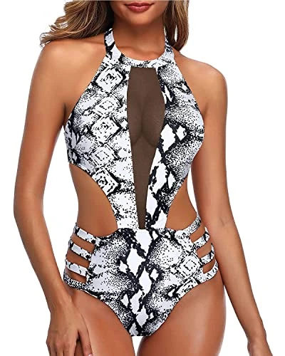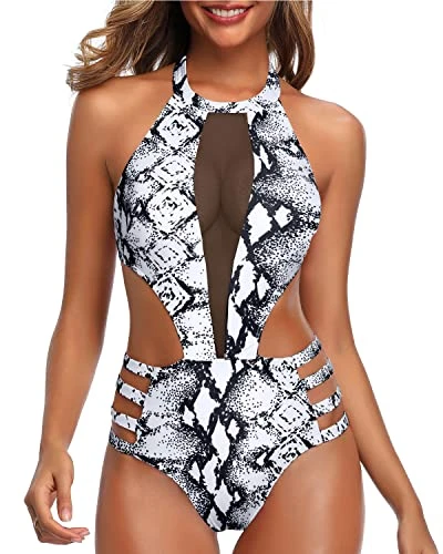 Make a bold statement with this daring and provocative high neck halter cutout monokini one piece mesh swimsuit, perfect for the confident and fashion-forward woman.
