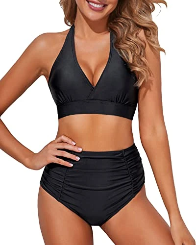This high-waisted bikini set features a removable padded bra, ruched bottoms for tummy control, and a quick-drying, stretchy, and comfortable fabric. Perfect for beach parties and vacations.