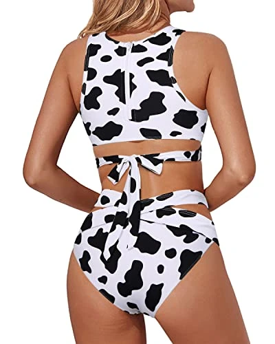 Make a splash in this eye-catching high neck cutout criss cross bandage bikini set, complete with a removable padded bra and a tie waist that can be adjusted to your liking.