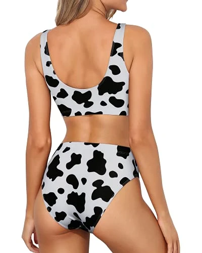 Stand out at the beach or pool with this stylish and comfortable scoop neck sporty high waisted bikini set, featuring a soft padded push up bra and a flattering high cut leg design.