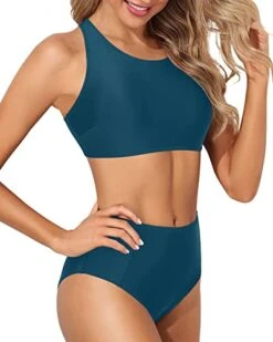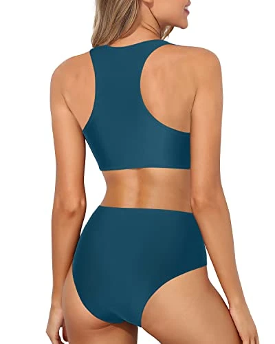Get ready to show off your sporty and chic style in this high waisted sporty racerback bikini set, featuring a tank style top and full coverage bottom with tummy control effect.