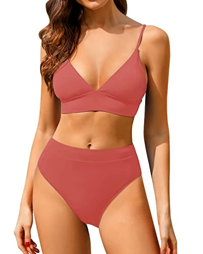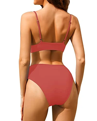 Get ready for summer with this sexy two-piece swimsuit featuring a V-neck top and cheeky, athletic-style bottom with full coverage.Great choice for women of all ages.