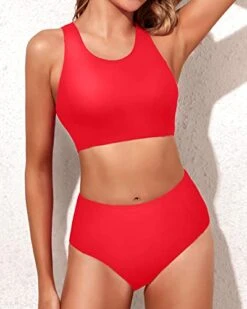 Elevate your swimwear collection with this chic and stylish two piece high waisted sporty bikini set, designed to provide comfort, support, and coverage for a look that’s both fashionable and functional.