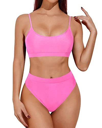 Stay supported and comfortable in this sporty scoop neck swimsuit with adjustable spaghetti straps and optional padded push-up bras.